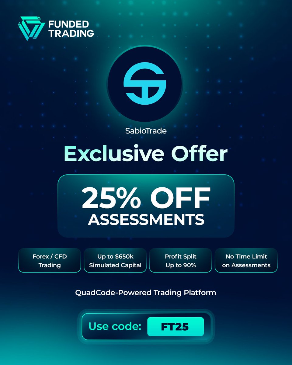 SabioTrade is offering 25% off assessments for the Funded Trading community.